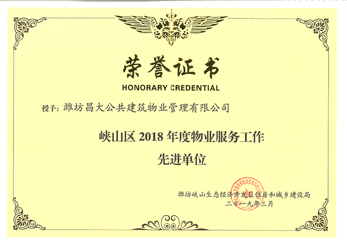 2018年度峽山區(qū)物業(yè)服務工作先進單位