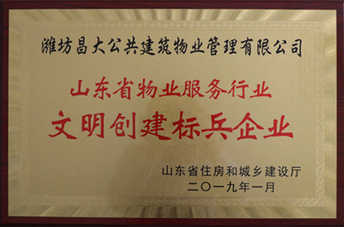 2019年1月被評為“山東省物業(yè)服務(wù)行業(yè)文明創(chuàng)建標(biāo)兵企業(yè)”