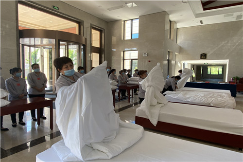 培訓(xùn)在前,提升在后。5月28日,客房舉行中式鋪床技能大賽,房務(wù)部員工即興賦詩:“首陽山下鋪床忙,被角里面有文章,技能提升來分曉,處處增添好景象”。